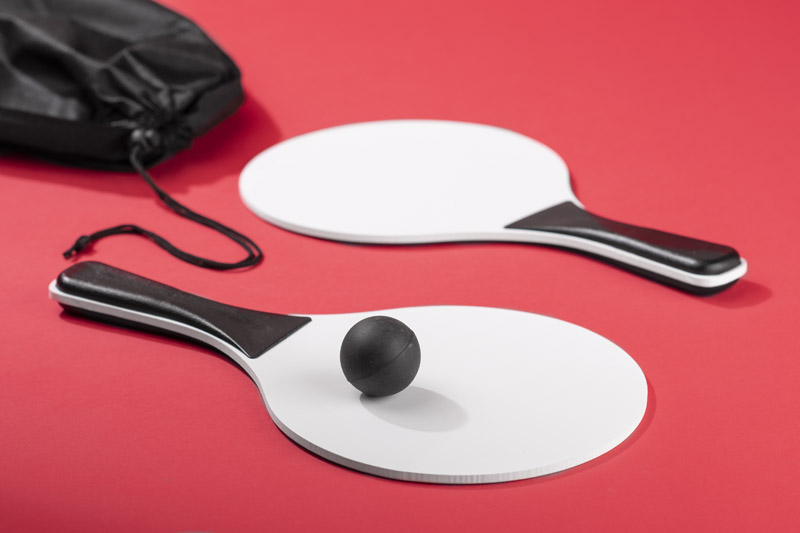 TINES paplūdimio rakečių rinkinys supakuotas į maišelį, todėl raketes lengva pasiimti su savimi bet kur. Komplekte yra kamuoliukas.