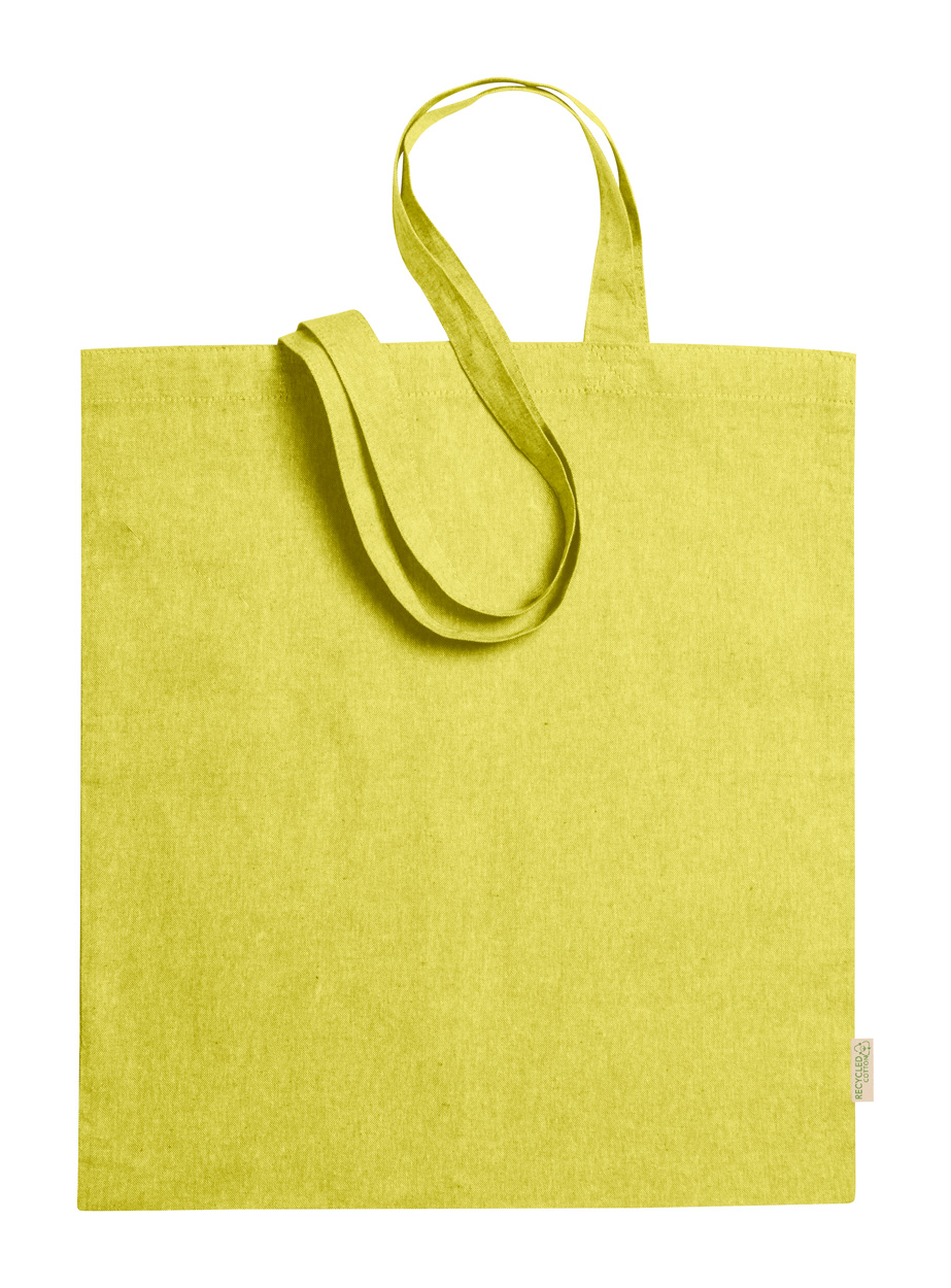 Daugkartinio naudojimo, perdirbtos medvilnės pirkinių maišelis su ilgomis rankenomis. 100 % perdirbta medvilnė, 120 g/m².