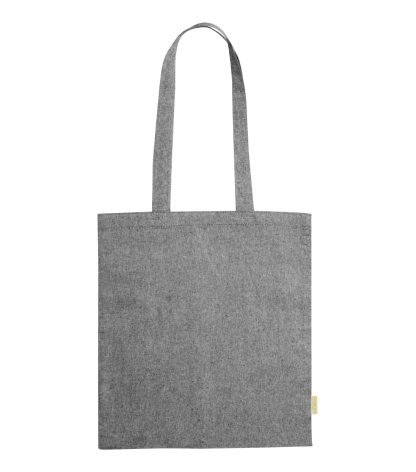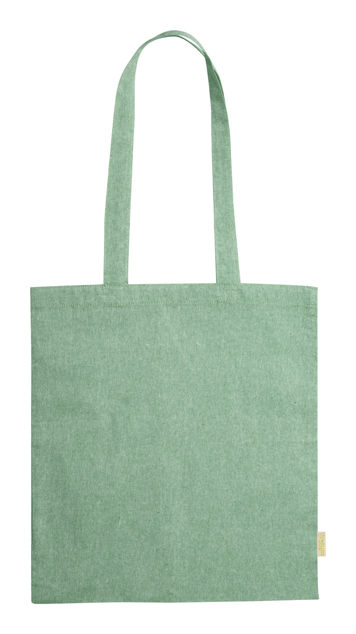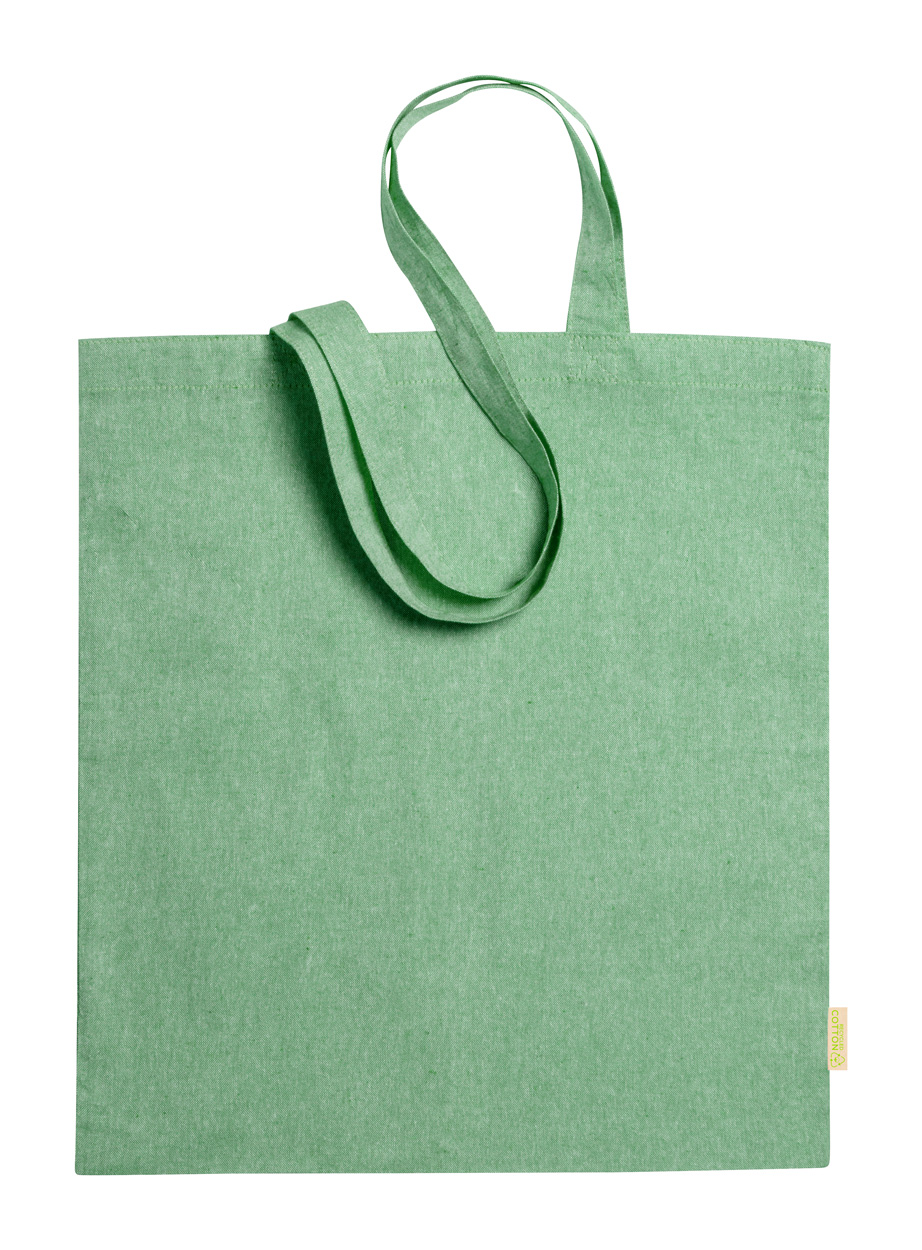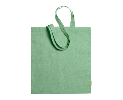Daugkartinio naudojimo, perdirbtos medvilnės pirkinių maišelis su ilgomis rankenomis. 100 % perdirbta medvilnė, 120 g/m².