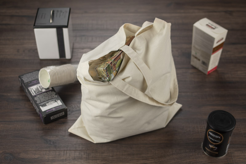 Ekologiškas krepšys iš natūralios medvilnės (140 g/m2) ilgomis rankenomis.