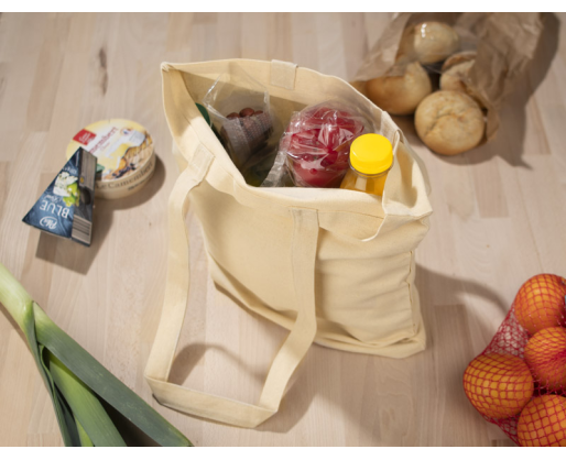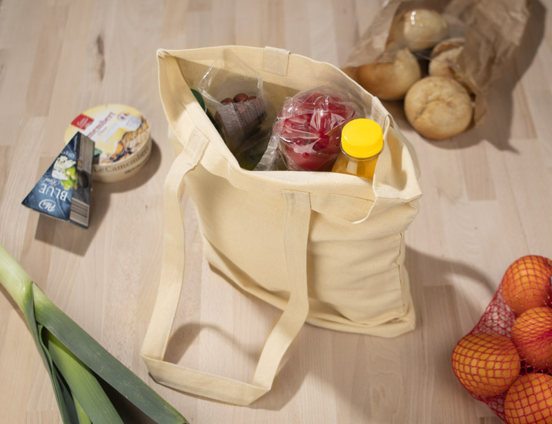 Ekologiškas krepšys iš natūralios, labai patvarios medvilnės (220 g/m2) ilgomis rankenomis.