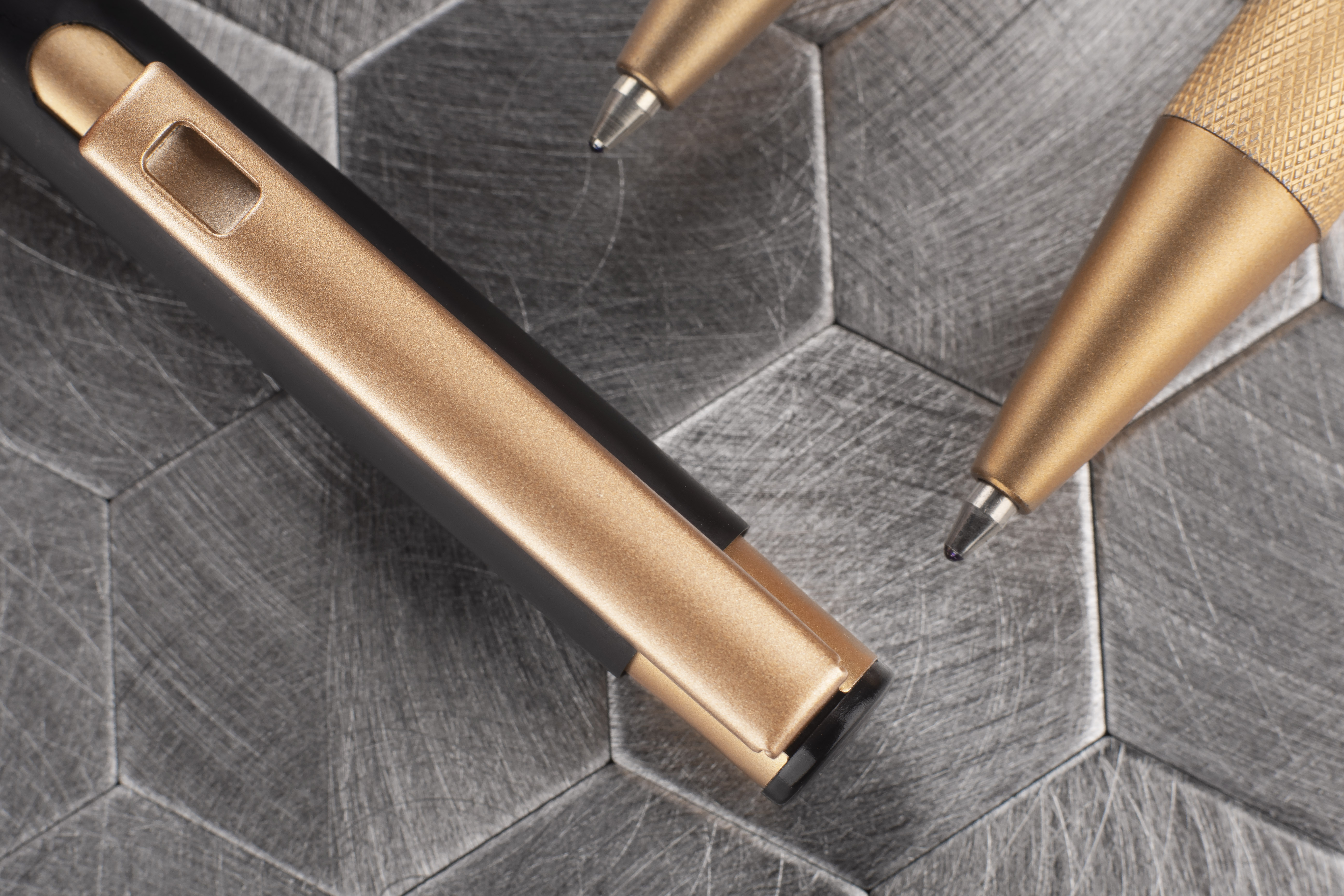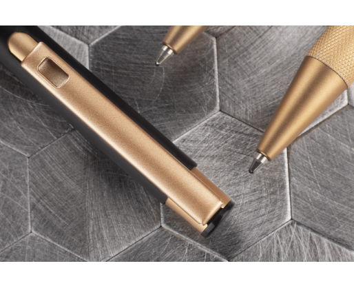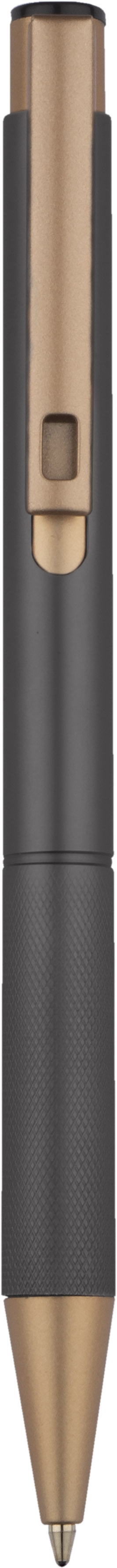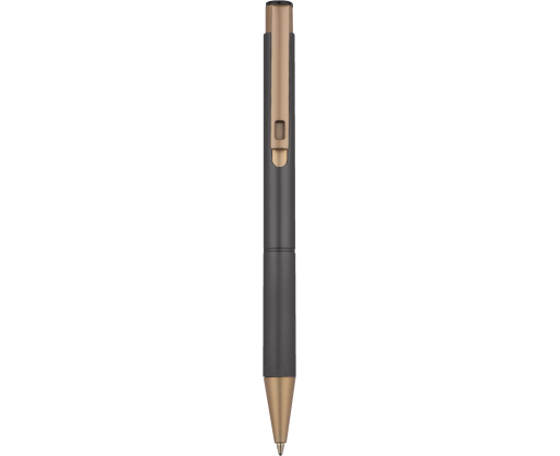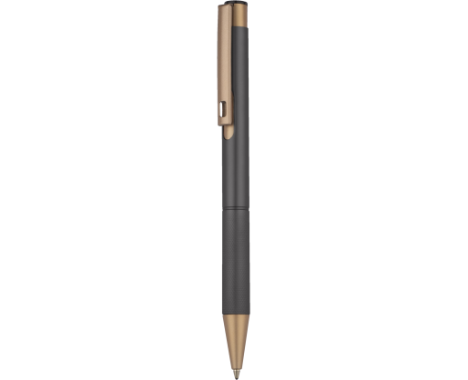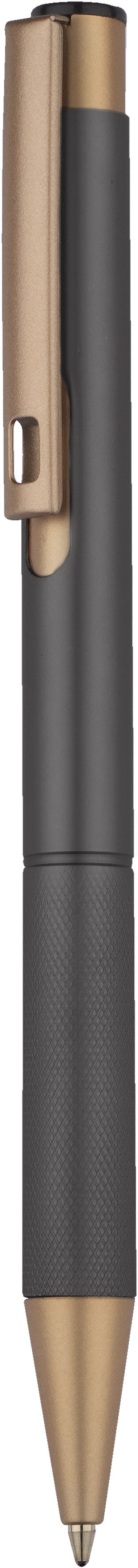 Elegantiškas aliuminio tušinukas su aukso spalvos apdaila.