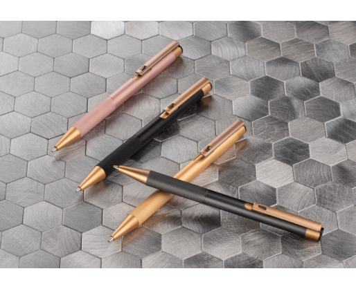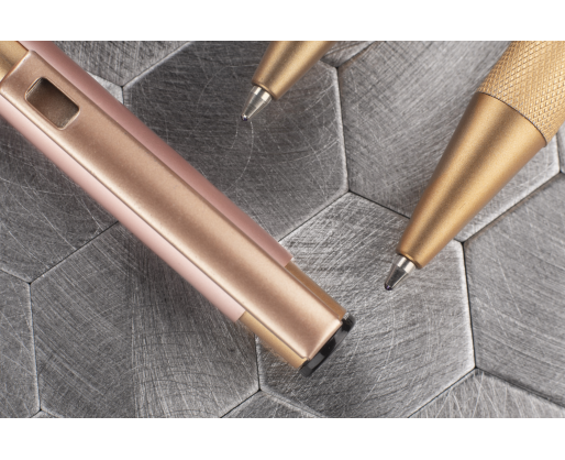 Elegantiškas aliuminio tušinukas su aukso spalvos apdaila.