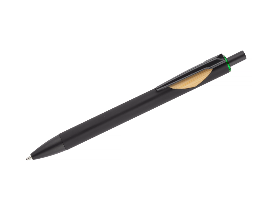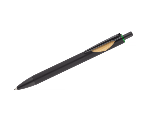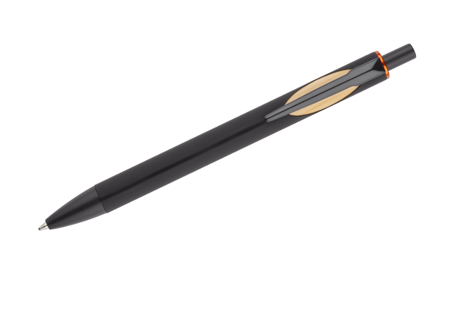 Automatinis tušinukas FRANK BC19063, juodos spalvos korpusas su bambukine ir įvairių spalvų detale, mėlynas rašalas. Išmatavimai 144 x 11 mm