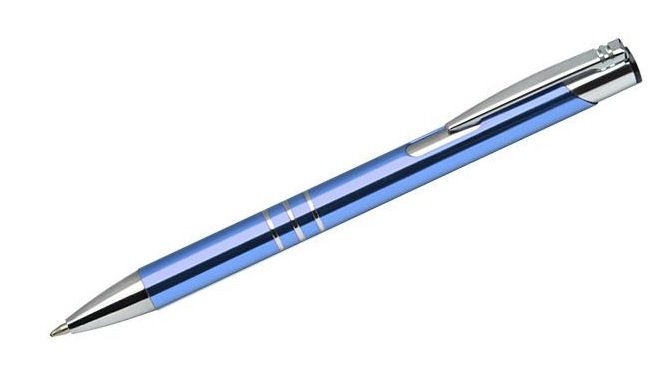Automatinis tušinukas KALIPSO šviesiai mėlynos spalvos, metalinis korpusas. Mėlynas rašalas. Tinka graviruoti. BC19061-08.