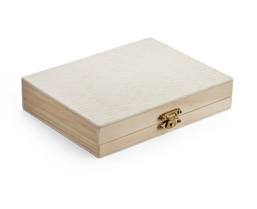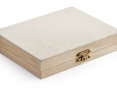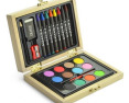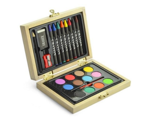Dailės reikmenų rinkinys BC19814 medinėje dėžutėje. Rinkinį sudaro vaškinės kreidelės, trintukas, pieštukas, drožtukas, akvareliniai dažai, teptukas. Išmatavimai 116x155x32 mm. Tinka graviravimui ir tampografijai.