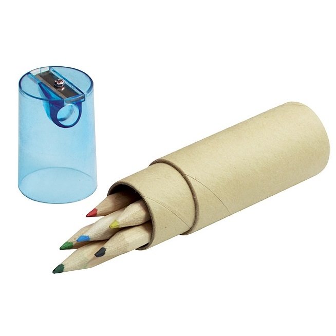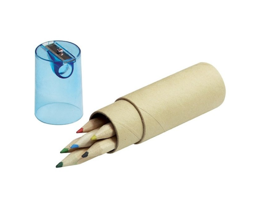 Spalvotų pieštukų rinkinys su drožtuku BC19803, 6 pieštukai. Rinkinys pagamintas iš perdirbtų medžiagų. Pieštukų išmatavimai 25x103 mm. Tampografijos būdu galimas logotipo uždėjimas.