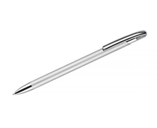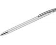 Plonas ir glotnus metalinis tušinukas su metaline apdaila. Rašalas mėlynas, brėžio storis 0.7mm. Išmatavimai 144x8,5 mm. Tinka graviravimui.