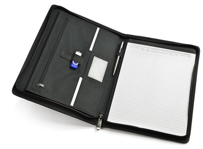 Dokumentų aplankas-dėklas juodas su užtrauktuku.