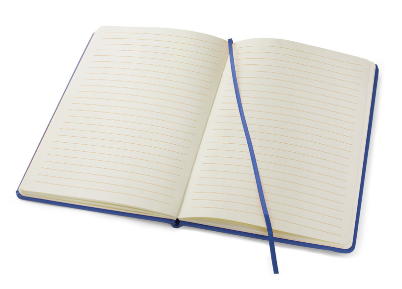 Užrašų knygelė 209x140x14 mm, dirbtinės odos višelis, su guma; Kreminės spalvos popierius linijomis, 80 lapų. Tinka dėti reklaminį užrašą.