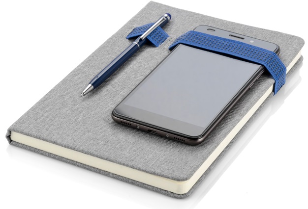 Užrašų knyga HOLDI A5 formato, 80 lapų linija, pilkos spalvos viršelis su mėlynos spalvos guma, kuri puikiai prilaikys jūsų mobilųjį telefoną, vizitines korteles ar rašymo priemonę. Išmatavimai 145x215x15 mm. Galima dėti užrašą reklamai ar logotipą. BC17691-03