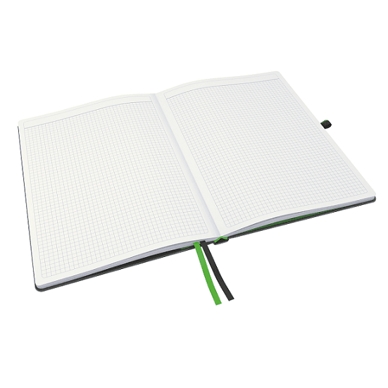 Sąsiuvinis kietu dirbtinės odos viršeliu, 80 dramblio kaulo spalvos lapų langeliais, 100gsm popieriaus storis. Galimos spalvos: balta, raudona, juoda.