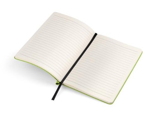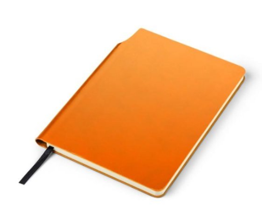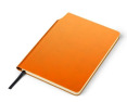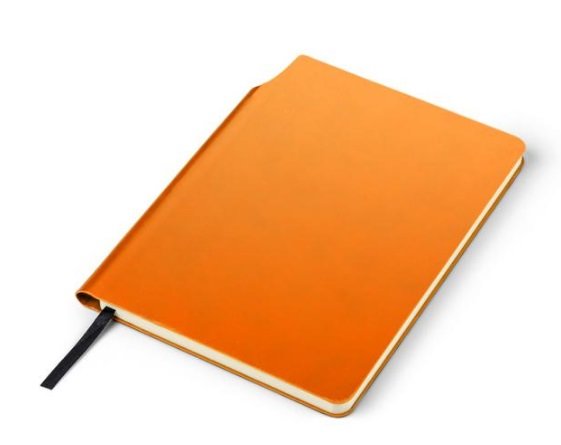 Užrašų knyga MOLI A5 formato, 96 lapai linija, oranžinės spalvos eco odos viršelis. Užrašų knygos nugarėlė pritaikyti patogiai įsisegti tušinuką. Tinka dėti reklaminį užrašą. BC17678-07 Išmatavimai 209x152x12 mm.