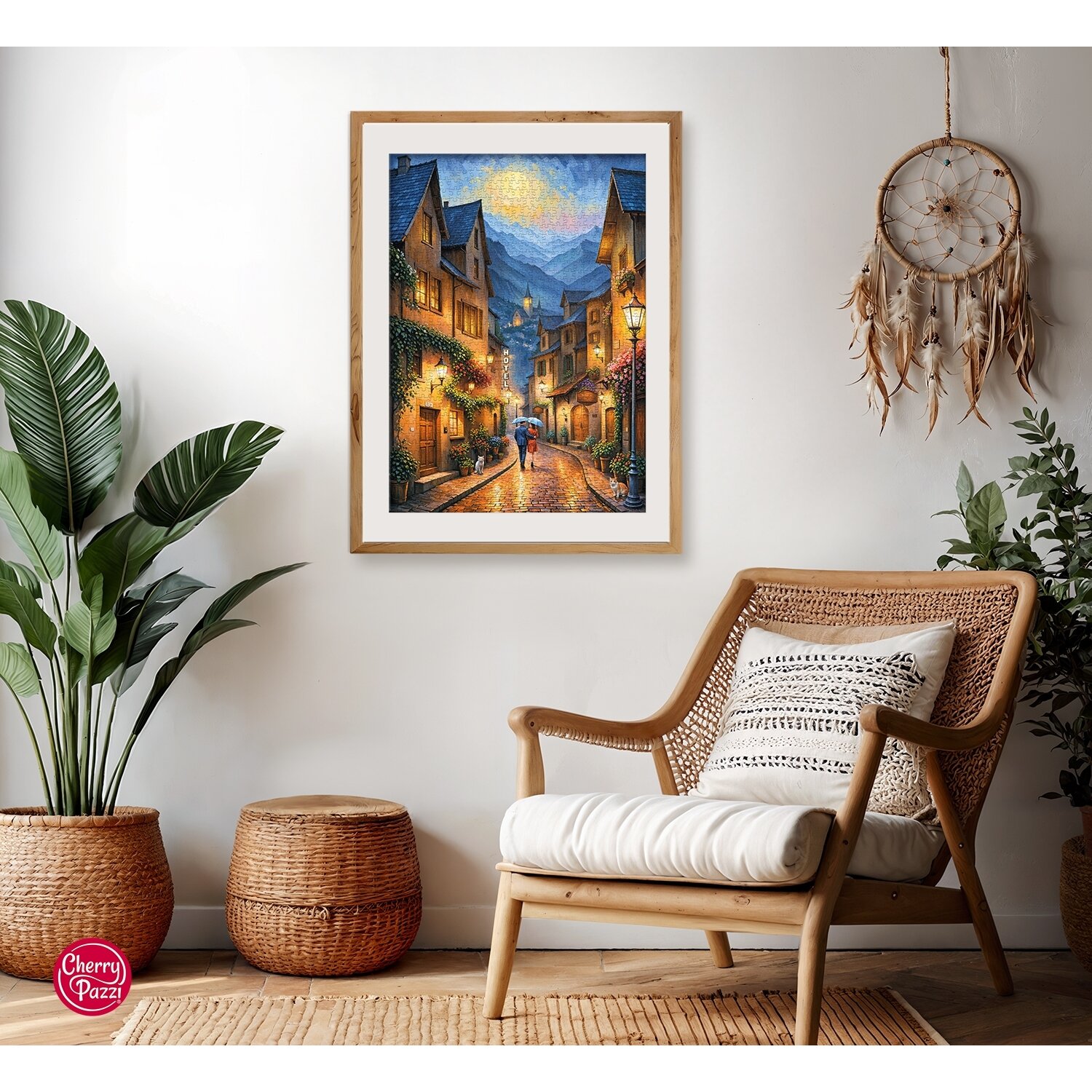 Švelnus lietus žėri ant akmenimis grįstų gatvių, kai dvi sielos klaidžioja susikibusios rankomis, įrėmintos žavingų namų.