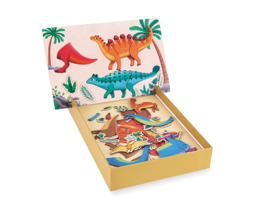 Smagus magnetukų žaidimas, kurio metu turėsite sudėlioti dinozaurus bei sužinosite jų pavadinimus. O sudėliojus visus dinozaurus, galima ir pasilinksminti-dėlioti savo vaizduotės dinozaurą. Žaidimas skatina vaikų kūrybingumą, pastabumą detalėms, dėmesio koncentravimą bei domėjimąsi gyvūnais, kurių jie dar nežino.