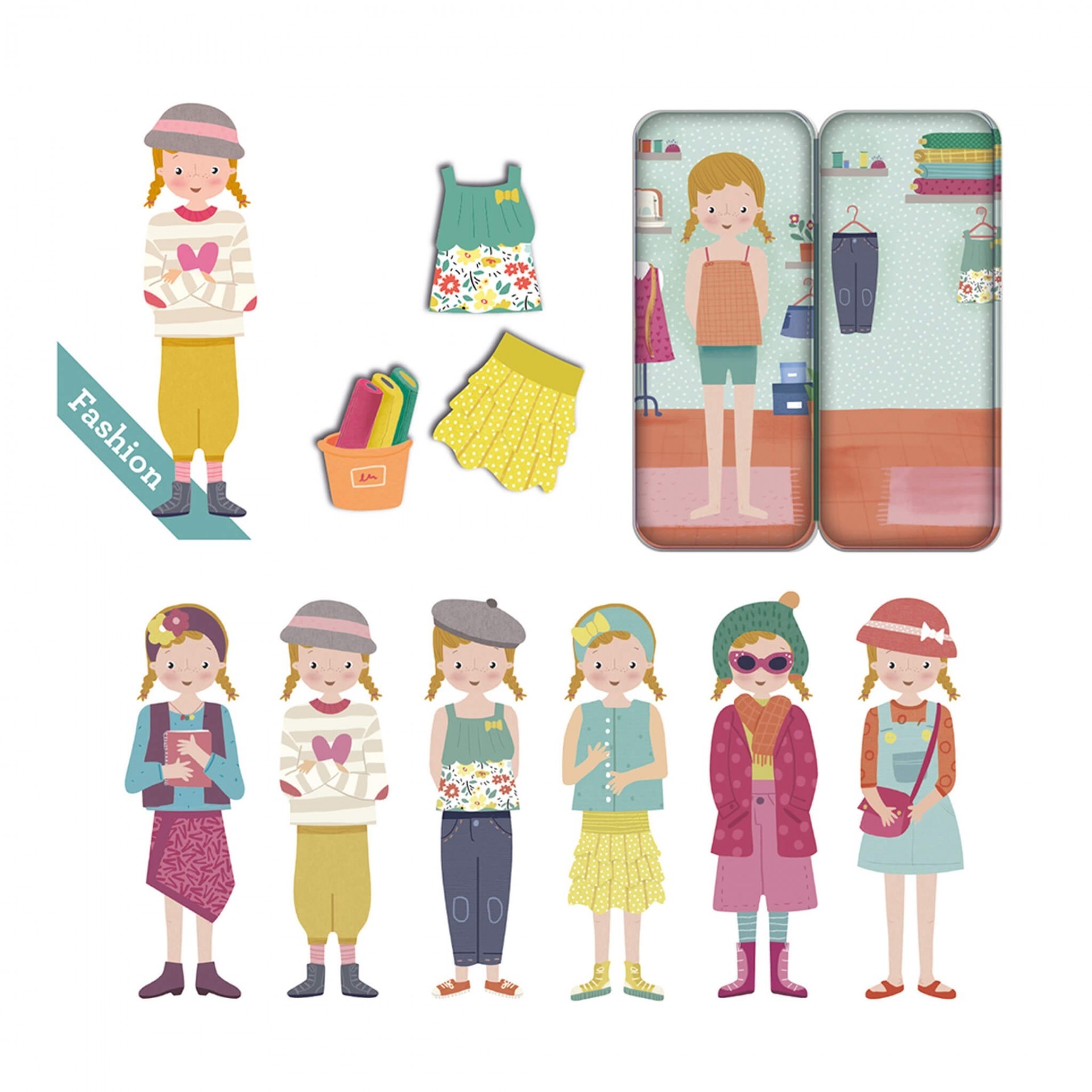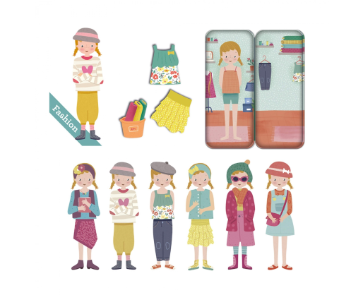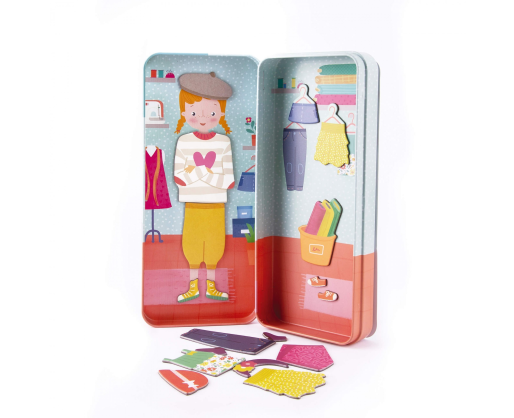 Smagus magnetinis žaidimas, kuriame vaikai gali pasitelkti kūrybiškumą aprengdami ir perrengdami magnetinę mergaitę įvairiais rūbeliais bei aksesuarais. Žaidimas skatina kūrybingumą, pastabumą detalėms, dėmesio koncentravimą. Žaidimo detalės sudėtos į nedidelę metalinę dėžutę, todėl bus patogu imti su savimi, kad ir kur bekeliautumėte - į svečius, parką ar kelionę.