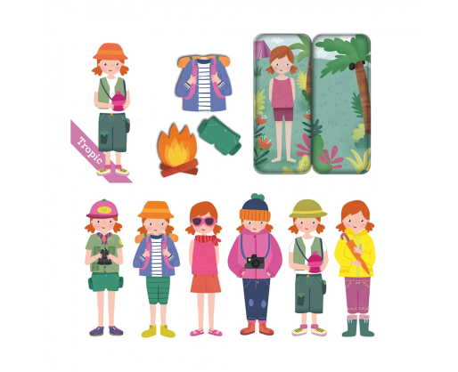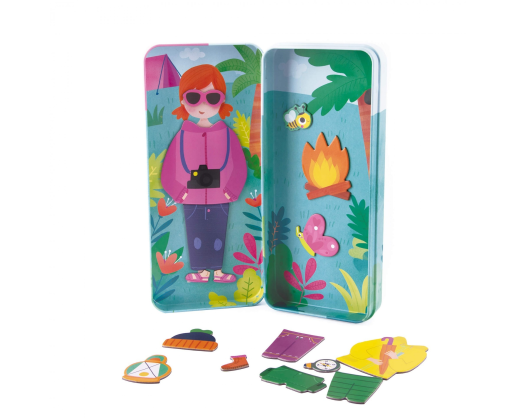 Smagus magnetinis žaidimas, kuriame vaikai gali pasitelkti kūrybiškumą aprengdami ir perrengdami magnetinę mergaitę įvairiais rūbeliais bei aksesuarais. Žaidimas skatina kūrybingumą, pastabumą detalėms, dėmesio koncentravimą bei domėjimąsi vaikus supančia aplinka. Žaidimo detalės sudėtos į nedidelę metalinę dėžutę, todėl bus patogu imti su savimi, kad ir kur bekeliautumėte - į svečius, parką ar kelionę.
