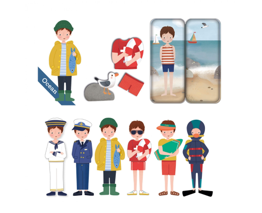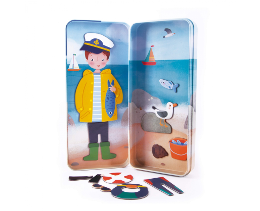 Smagus magnetinis žaidimas, kuriame vaikai gali pasitelkti kūrybiškumą aprengdami ir perrengdami magnetinį berniuką įvairiais rūbeliais bei aksesuarais. Žaidimas skatina kūrybingumą, pastabumą detalėms, dėmesio koncentravimą bei domėjimąsi vaikus supančia aplinka. Žaidimo detalės sudėtos į nedidelę metalinę dėžutę, todėl bus patogu imti su savimi, kad ir kur bekeliautumėte - į svečius, parką ar kelionę.
