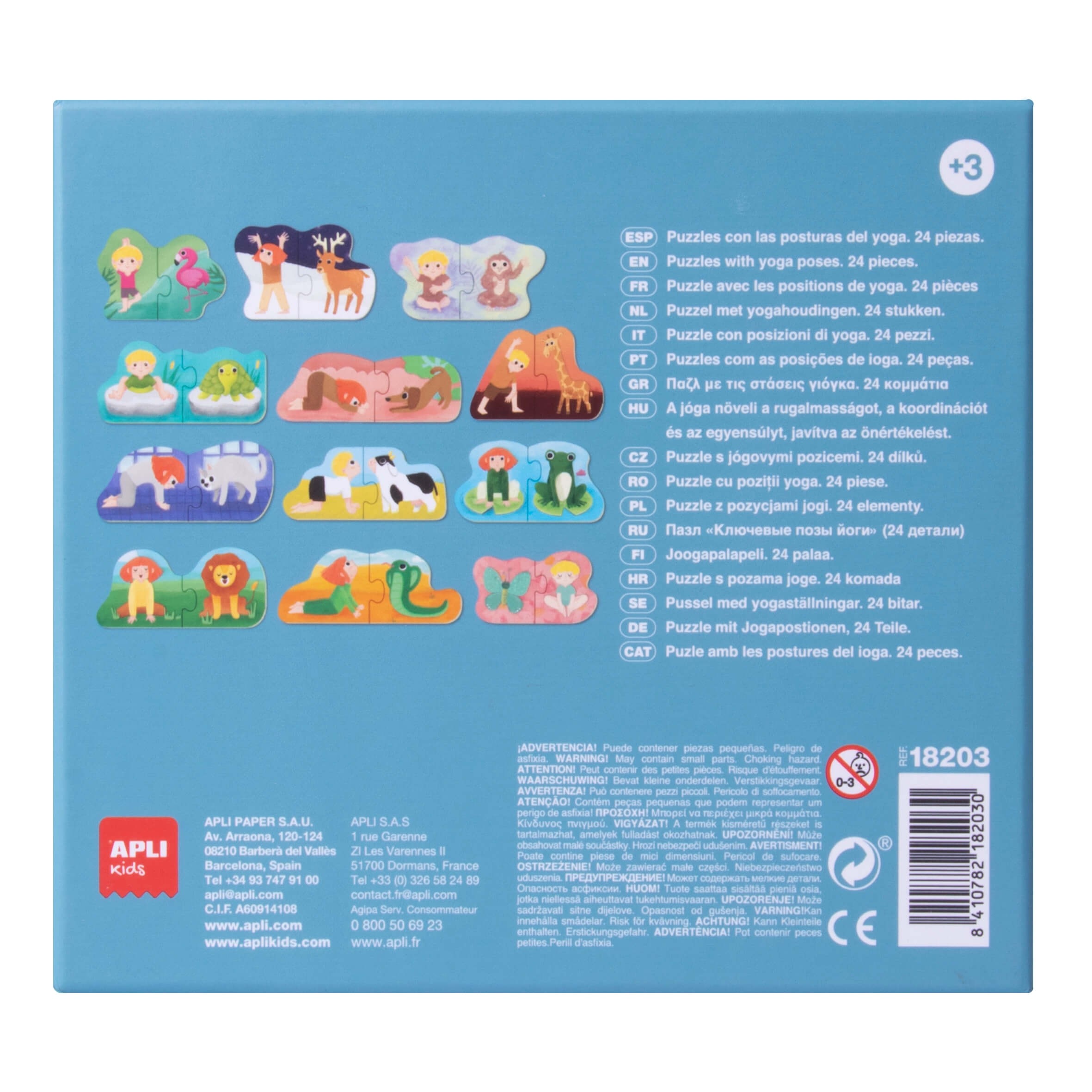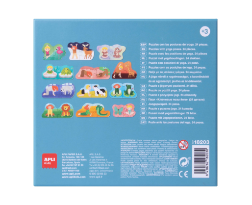 Kiekviena jogos poza sudaryta iš dviejų dėlionės dalių, dėžutėje rasite 12 skirtingų pozų.
