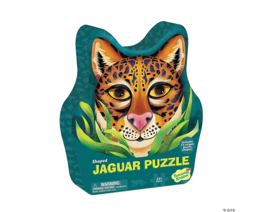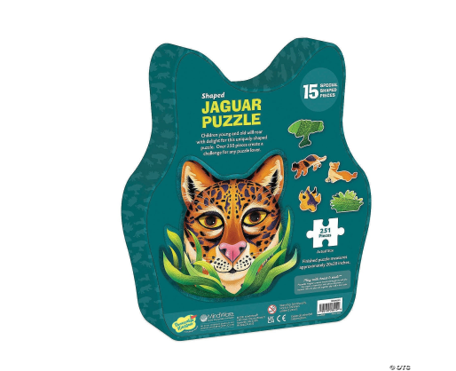 Jaguaro formos dėlionė su unikaliomis detalėmis - smagi pramoga mažiesiems Ateities Herojams. Net 15 unikalių formų detalių, tokių kaip medis, pantera ar letenos antspaudas, skatins kritinį mąstymą, pastabumą bei gyvūnų ir gamtos pažinimą. Puikiai tiks smagiam žaidimo laikui tiek namuose, svečiuose ar ugdymo įstaigose. Surinktos dėlionės apytiksliai išmatavimai: 50 cm x 50 cm.Viduje: 251 detalės, įskaitant 15 unikalios formos detales.