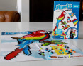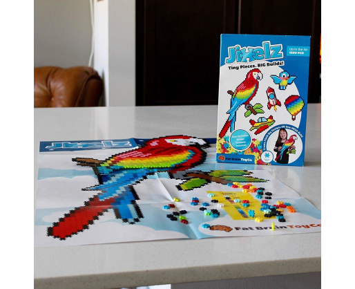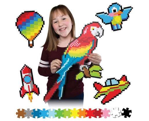 Klasikinis dėlionių džiaugsmas tampa tikru pikselių kūrybiškumo nuotykiu. Kiekvienas rinkinys turi 1500 ryškių, preciziškai išpjaustytų dėlionės detalių. Sekdami šablonais transformuokite mažytes pikselinės dėlionės detalės į keturis MINI projektus arba vieną DIDŽIULĮ paveikslą. Su Aukštyn į orą rinkiniu galėsite pastatyti raketlaivį, mažą mėlyną paukštelį, lėktuvėlį ir oro balioną arba milžinišką tukaną. O jei norėsite, pasitelkę kūrybiškumą galėsite sukurti savo unikalius dizainus. Visos Jixelz detalės puikiai tinka viena su kita, o sudėtos tvirtai laikosi. Skatina smulkiuosius motorinius įgūdžius, erdvinį aiškinimą, kūrybiškumą, planavimo įgūdžius.