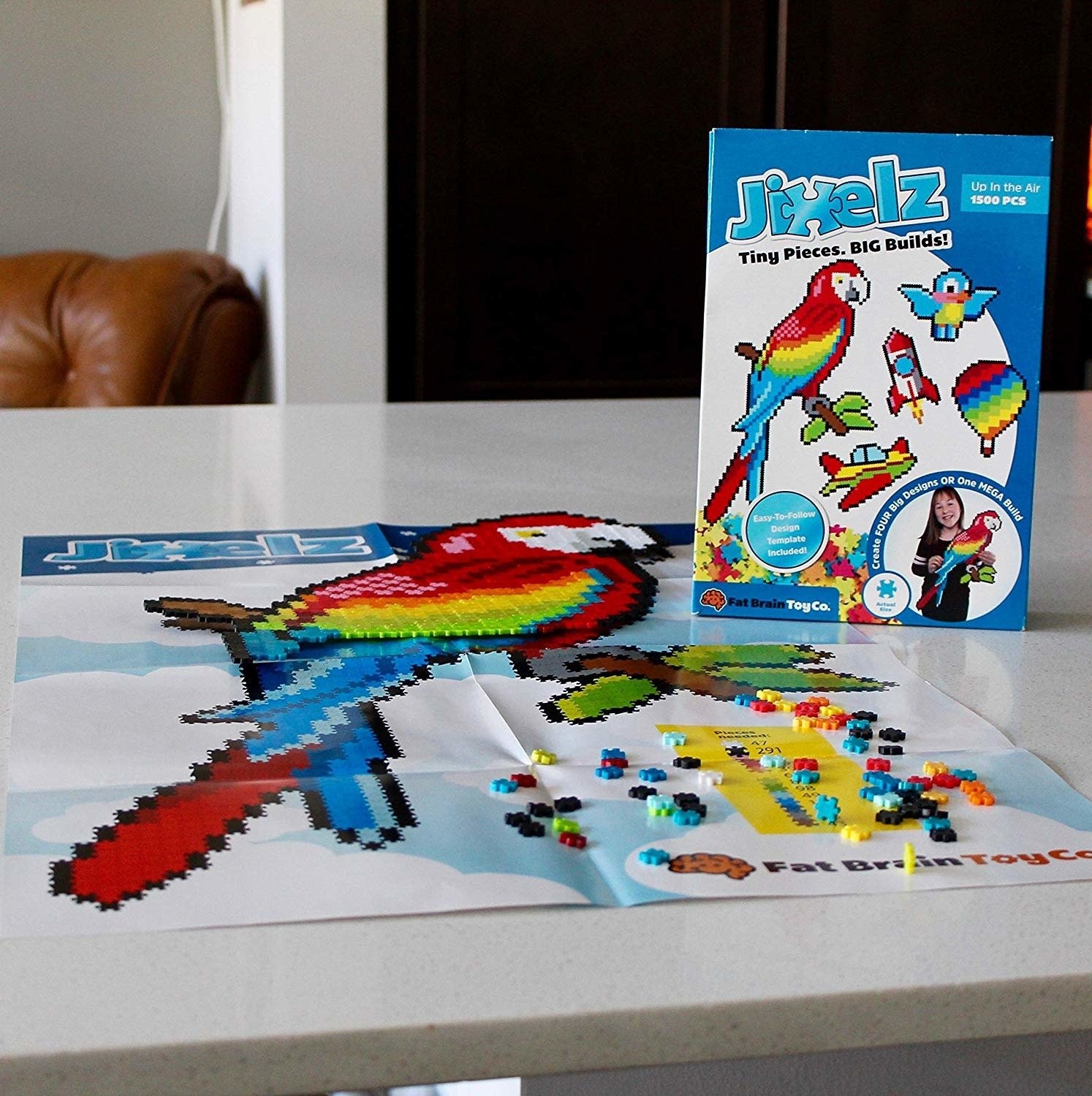 Viduje: 1500 jixelz dėlionės detalių ir instrukcijos.