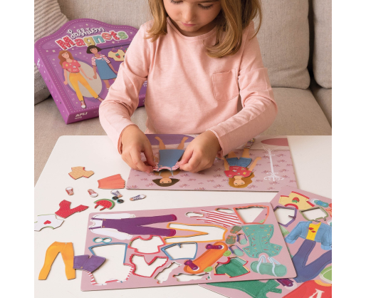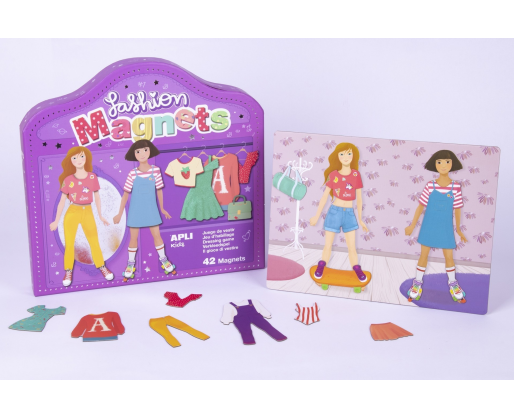 Tapk jaunuoju dizaineriu! Smagus magnetinis žaidimas, kuriame vaikai gali pasitelkti kūrybiškumą aprengdami ir perrengdami dvi charizmatiškas magnetines mergaites įvairiais rūbeliais bei aksesuarais. Žaidimas skatina kūrybingumą, pastabumą detalėms ir padeda ugdyti dėmesio koncentravimą.Viduje: 28 x 20,5 cm dydžio magnetinė lentelė ir 42 įvairiai ir madingai išmarginti magnetukai.