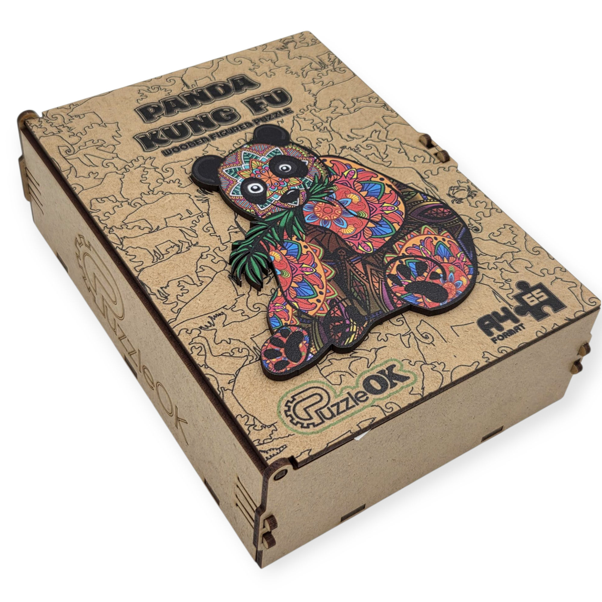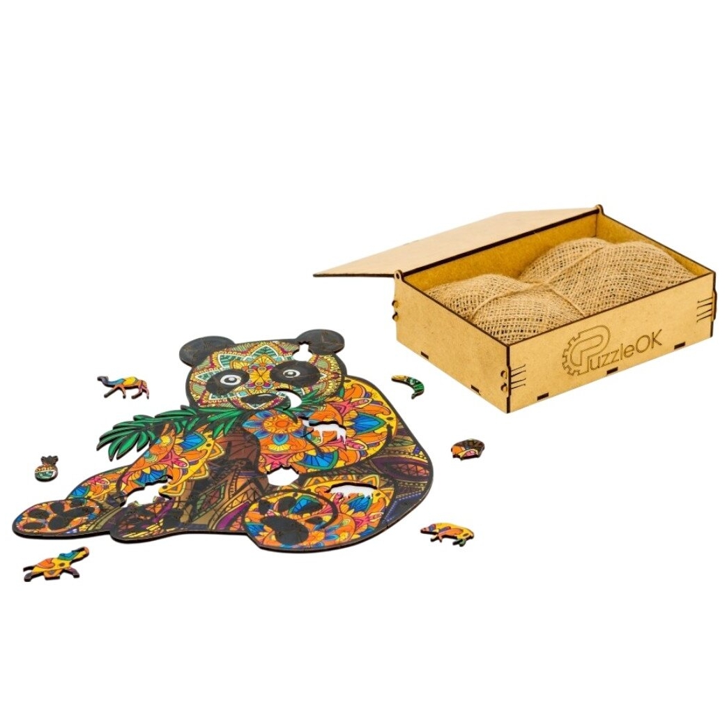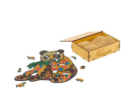 Išskirtinė medinė dėžutė su pandos paveikslėliu bus puiki gimtadienio dovana jūsų vaikui, jums ar jūsų draugams. Netikėta staigmena visada įdomi. Viduje lininiame ritinėlyje kruopščiai supakuota 50 keistų formų įvairiaspalvių elementų, iš kurių reikia padaryti tikslią dangtelio viršuje esančio paveikslėlio kopiją.