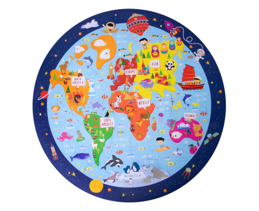 Kai dėlionė bus surinkta, vaikai atras skirtingus mūsų planetos žemynus ir vandenynus. Dėlionė, padedanti vaikams susipažinti su Žemės planeta.