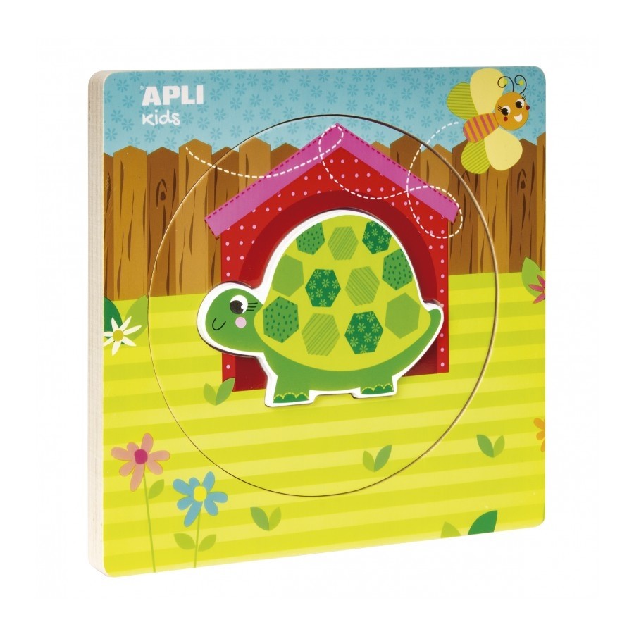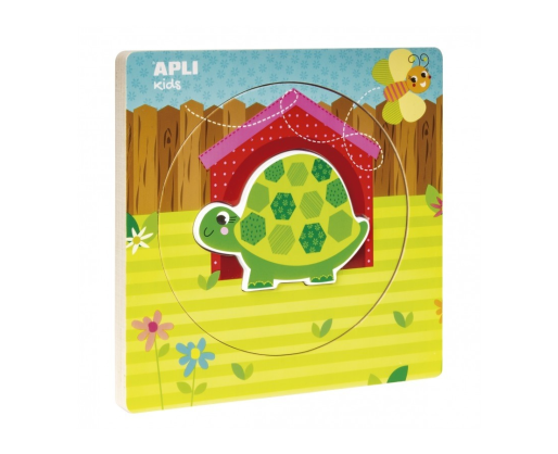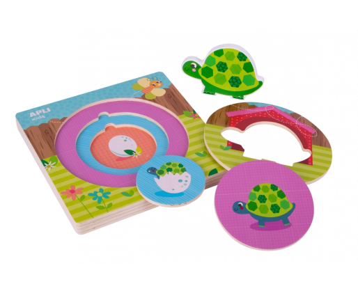 „Vėžliukas” yra medinė, spalvinga, apvali dėlionė, sudaryta iš 3 skirtingų sluoksnių, reprezentuojančių gyvenimo ratą. Ketvirtasis ir paskutinysis sluoksnis - tai medinė vėžliuko formos detalė, su kuria vaikai gali žaisti. Šios dėlionės tikslas yra išmokyti vaikus atskirti, atpažinti ir atitaikius įdėti kiekvieną detalę į jai skirtą vietą. Toks žaidimas turi aukštą didaktinę reikšmę, vysto smulkiąją rankų motoriką, moko skirti spalvas, vystyti loginį mąstymą ir vizualinį erdvės suvokimą.Viduje: Keturios dėlionės detalės, dėlionės pagrindas.