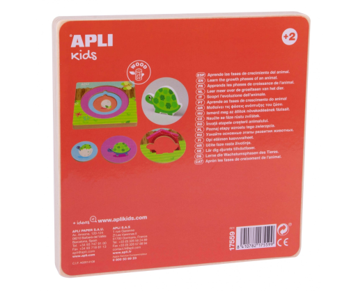 Kaip žaisti: Dėliokite dėlionės detales ant specialios dėliojimo lentos ir užbaikite vėžliuko gyvenimo rato paveikslą.