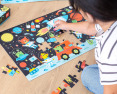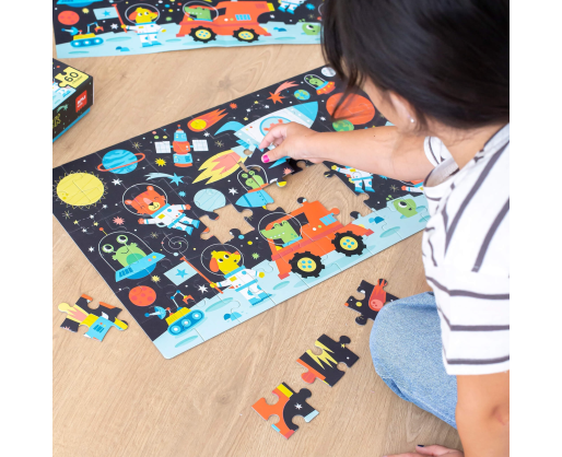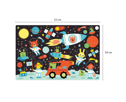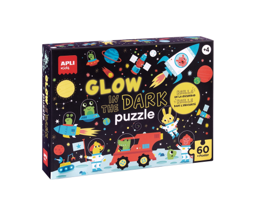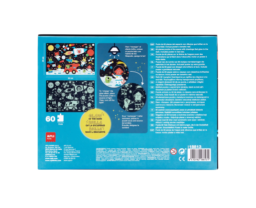 Dėžutės viduje rasite tikro dėlionės dydžio plakatą, kuris palengvins dėlionės sudėjimą. Surinkę dėlionę, ją apšvieskite stipriu šviesos šaltiniu ir po keliolikos minučiųtamsoje galėsite matyti švytinčias planetas, žvaigždes ir gyvūnus astronautus.