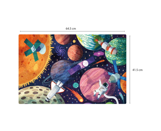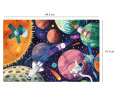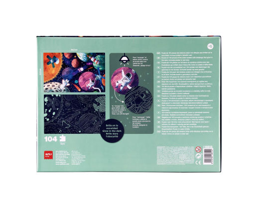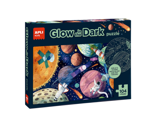 Dėžutės viduje rasite tikro dėlionės dydžio plakatą, kuris palengvins dėlionės sudėjimą. Surinkę dėlionę, ją apšvieskite stipriu šviesos šaltiniu ir po keliolikos minučiųtamsoje galėsite matyti švytinčias planetas, žvaigždes ir gyvūnus astronautus.