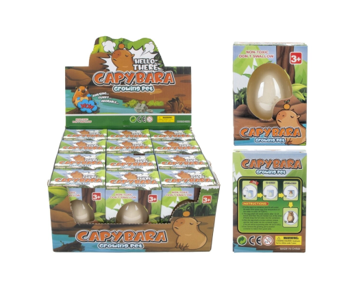 Linksmas ir įtraukiantis žaislas vaikams – kapibaros auginimo kiaušinis, kuris, įdėtas į vandenį, pradeda „skilti“ ir po truputį išauga į mielą kapibarą! Tai smagus stebėjimo ir laukiamos staigmenos žaidimas, skatinantis smalsumą bei kantrybę.