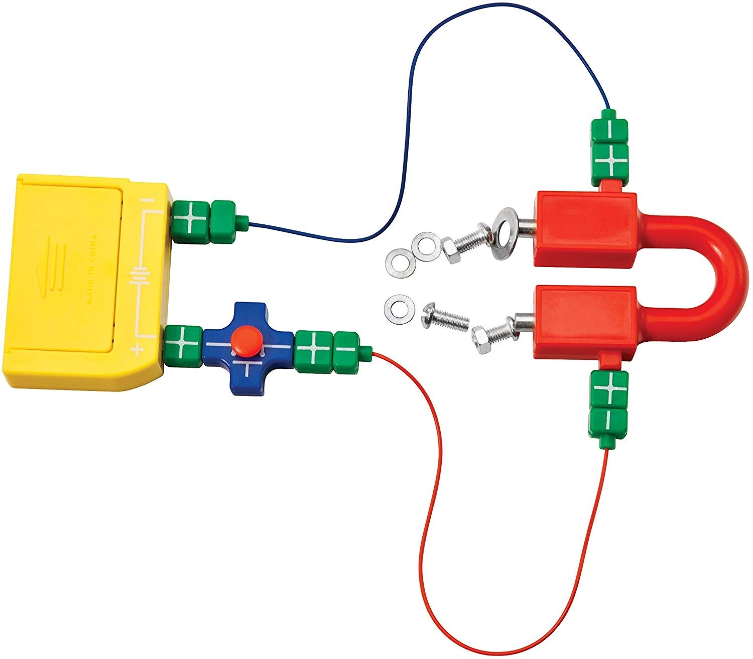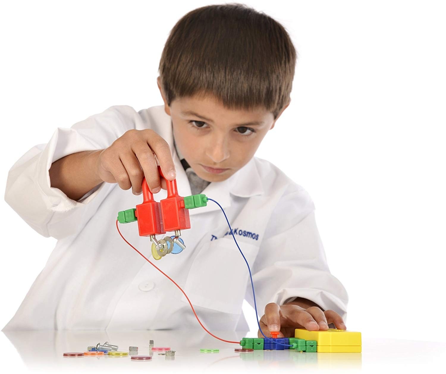 Kaip žaisti: Naudodamiesi rinkinyje esančiomius instrukcijomis, atlikite daugiau nei 60 įvairių eksperimentų, sukurkite elektros grandinę, įžiebiančią lemputę, nustatykite, kurios medžiagos yra magnetinės, ištirkite, kaip veikia įjungimo ir išjungimo mygtukai ir patirkite dar daugybę kitų atradimų.