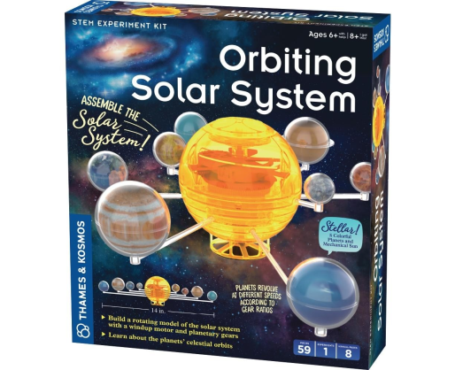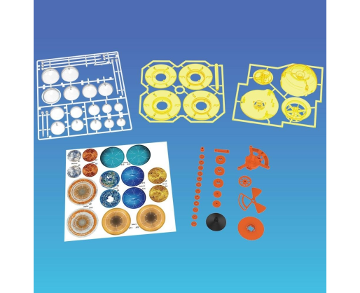 Pamatykite saulės sistemą judesy! Sukonstruokite mechaninį saulės sistemos modelį, susidedantį iš saulės ir 8 planetų. Tada mostelėkite ranka ir stebėkite, kaip planetos sukasi aplink saulę. Konstruodami susipažinsite kaip veikia krumpliaračių ir prisukamasis mechanizmas. Įvardinkite ir apibūdinkite kiekvieną planetą – kokių ji spalvų, kokio dydžio, kiek nutolusi nuo saulės bei mokykitės kitus įdomius faktus apie saulės sistemą. Modelis veikia mechaniniu būdu, tad jam nereikalingi elementai. Šis rinkinys puikiai tiks mažiesiems planetologams ir pravers ugdymo įstaigoms, norinčioms vizualiai perteikti mokymosi medžiagą apie planetas. Beje, jeigu būtų atrasta devintoji paslaptingoji planeta, modelyje palikta papildoma anga jai.Viduje: 59 detalės, iliustruota surinkimo instrukcija (anglų kalba).