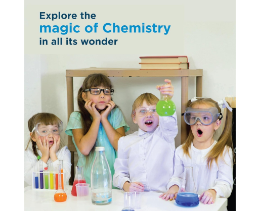 Atlikite 27 klasikinius eksperimentus, kurie padės suprasti fundamentalius chemijos dėsnius. Išmokite naudotis baziniais chemijos įrankiais, pasigaminkite gipsinį mėgintuvėlių stovą, tyrinėkite dažų sudėtį atliekant chromatografijos bandymus, kur spalvos magiškai atsiskiria viena nuo kitos. Stebėkite, kaip rūgštys ir bazės tirpdo kriaukles, gesina žvakes ir atraskite nematomą anglies dioksido dujų galią! Viskas, ko reikia sėkmingiems ir saugiems bandymams, yra išsamioje 48 puslapių spalvotoje instrukcijų knygoje.