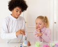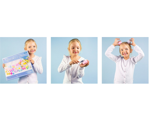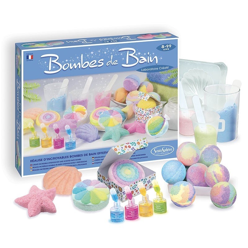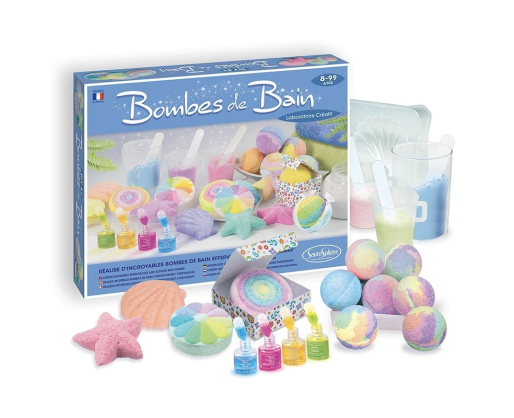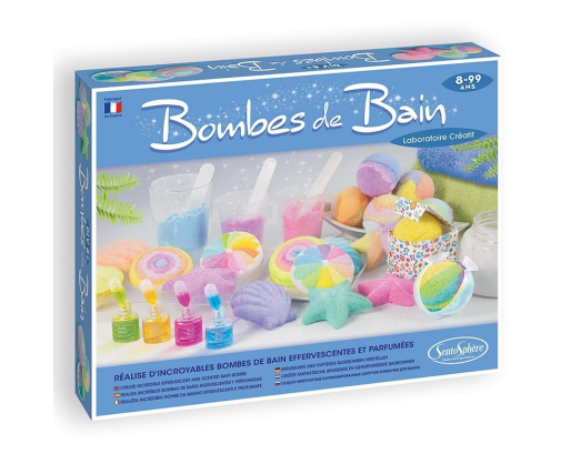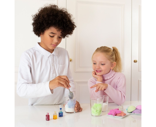 Su šia puikia kūrybine-kosmetine laboratorija sukurkite spalvingus ir subtiliai kvepiančius vonios burbulus, kurie smagiai šnypš Jūsų vonioje leisdami Jums mėgautis atpalaiduojančiomis akimirkomis. Ne paslaptis, jog vaikus žavi viskas, kas šnypščia ir putoja, tad jiems tikrai patiks šis namų laboratorijos rinkinys, siūlantis sukurti savo išskirtinius, įvairių formų (gėlių, jūros žvaigždžių, planetų, raketų) vonios burbulus! Subtilus kosmetikos produktų mišinys įspaudžiamas į skirtingas formas vaizduojančias formeles. Substancijai sustingus galite ją išimti ir panaudoti savo kūrinius švelniai spalvotai, kvapniai, žaižaruojančiai ir atpalaiduojančiai voniai arba pakviesti joje atsipalaiduoti šeimos narius. Iliustruoti moksliniai paaiškinimai, esantys instrukcijose, supažindins su burbuliavimo/šnypštimo fenomenu, kurį galėsite stebėti vonioje. Šis “pasidaryk pats” rinkinys buvo patikrintas pagal “Žaislų ir kosmetikos” reglamentus prižiūrint dermatologų. Visi ingredientai ir formulės yra netoksiški bei visiškai saugūs vaikų odai.Viduje: 210 g natrio hidrokarbonato, 7 maišeliai rūgščių bazės, 3 dažikliai, 2 kvapikliai, 5 pipetės, 1 matavimo šaukštelis, 1 kamuoliuko formos formelė, 1 formelė su 5 skirtingomis formomis, 2 dovanų dėžutės, skirtos supakuoti pagamintus vonios burbulus, 2 piršt
