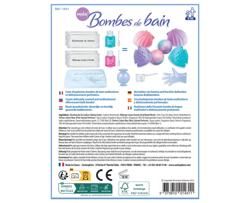 Su šia puikia kūrybine-kosmetine laboratorija sukurkite 6 nedidelius spalvingus ir subtiliai kvepiančius vonios burbulus, kurie smagiai šnypš Jūsų vonioje leisdami Jums mėgautis atpalaiduojančiomis akimirkomis. Ne paslaptis, jog vaikus žavi viskas, kas šnypščia ir putoja, tad jiems tikrai patiks šis namų laboratorijos rinkinys, siūlantis sukurti savo išskirtinius, įvairių formų (gėlių, jūros žvaigždžių, planetų, raketų) vonios burbulus! Subtilus kosmetikos produktų mišinys įspaudžiamas į skirtingas formas vaizduojančias formeles. Substancijai sustingus galite ją išimti ir panaudoti savo kūrinius švelniai spalvotai, kvapniai, žaižaruojančiai ir atpalaiduojančiai voniai arba pakviesti joje atsipalaiduoti šeimos narius. Šis “pasidaryk pats” rinkinys buvo patikrintas pagal “Žaislų ir kosmetikos” reglamentus prižiūrint dermatologų. Visi ingredientai ir formulės yra netoksiški bei visiškai saugūs vaikų odai.Viduje: 3 nedidelės formelės, kvepiantys dažikliai, natrio bikarbonatas ir rūgštinis pagrindas.