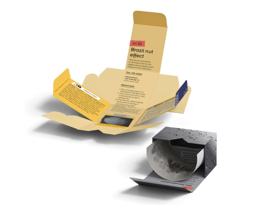 Atidaryk ir perskaityk: atsargiai atidarykite dėžutę. Ji išsiskleis ir pavirs mini instrukcijų knygele su tos dienos užduotimi.
