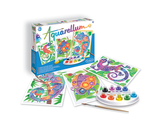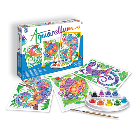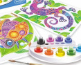 Viduje: 3 užmaskuoti piešiniai, 9 spalvų vandeniniai dažai, 1 aukštos kokybės teptukas, 1 paletė spalvoms maišyti, 1 pipetė, instrukcijos.