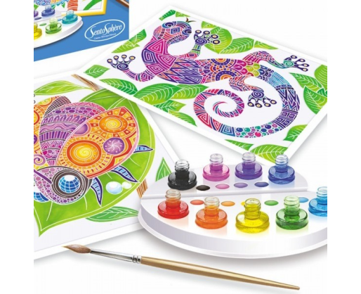 Smagiai praleiskite laiką prikeldami šiuos egzotinius, geometriniais raštais margintus gyvūnus gyvenimui! Su vos keliais akvarelinių dažų lašais sukursite tikrus meno kūrinius! Šis rinkinys - tai piešinių kolekcija, sukurta Véronique Debroise naudojant inovatyvią ir išskirtinę techniką maskuojant vaškinį popierių. Ši technika leidžia sukurti piešinius, kurie pasižymi išskirtiniu tobulumu bei rafinuotumu - teptukas neišsilieja už piešinio kraštų, raštai magiškai atsiranda iš karto, kai tik patepate popierių dažais, o spalvos nustebina savo sodrumu ir ryškumu. Tikra magija!
