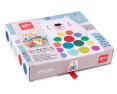 Baigę žaisti, vaikučiai gali susidėti viską į patogią, dailaus dizaino kartoninę dėžutę.