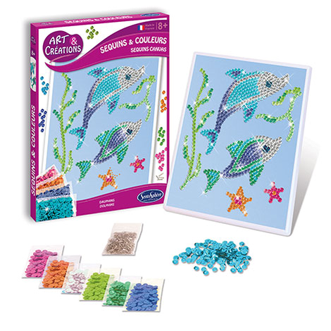 Šie delfinai sublizgės tūkstančiu spalvų dėka 6 spalvų blizgučių, kuriuos rasite šioje stebuklingoje dėžutėje. Galėsi pagaminti spinduliuojančius ir įvairiaspalvius paveiksliukus iš daugybės blizgučių, kuriuos reikia pritvirtinti su smeigtukais prie specialios kartoninės lentutės. Tai ypatingai smagi ir kūrybinga veikla kurianti daug blizgesio ir džiugesioViduje: • 1 kartoninė lentutė • 1 rėmas • 8 maišeliai blizgučių • 1 maišelis smeigtukų • 1 paaiškinimų lapas