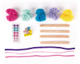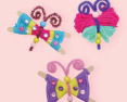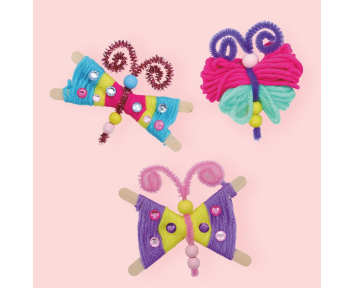 Viduje: Visos reikalingos medžiagos 3 vilnos drugeliams pasigaminti, lengvai suprantama instrukcija, įvairios detalės dekoravimui ir asmeniniam dizainui