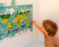 Kaip žaisti: Pakabinkite plakatą ant sienos ar pasidėkite ant grindų ir te prasideda pasaulio pažinimas! Klijuokite daugkartinius lipdukus taip pildydami plakatą, atraskite dar nematytus ir negirdėtus gyvūnus, įvardinkite, kur jie gyvena - sausumoje, vandenyje, o gal ore?
