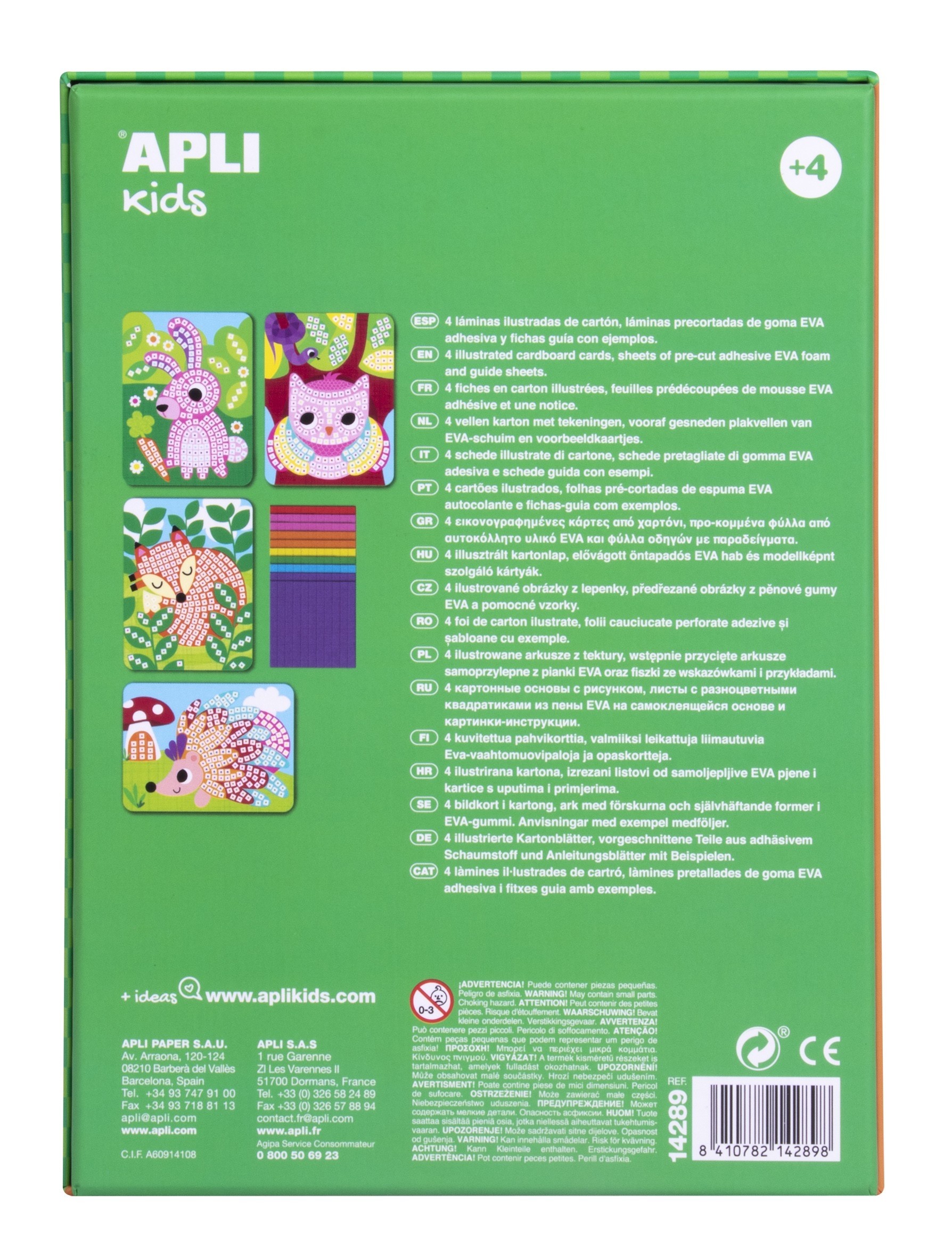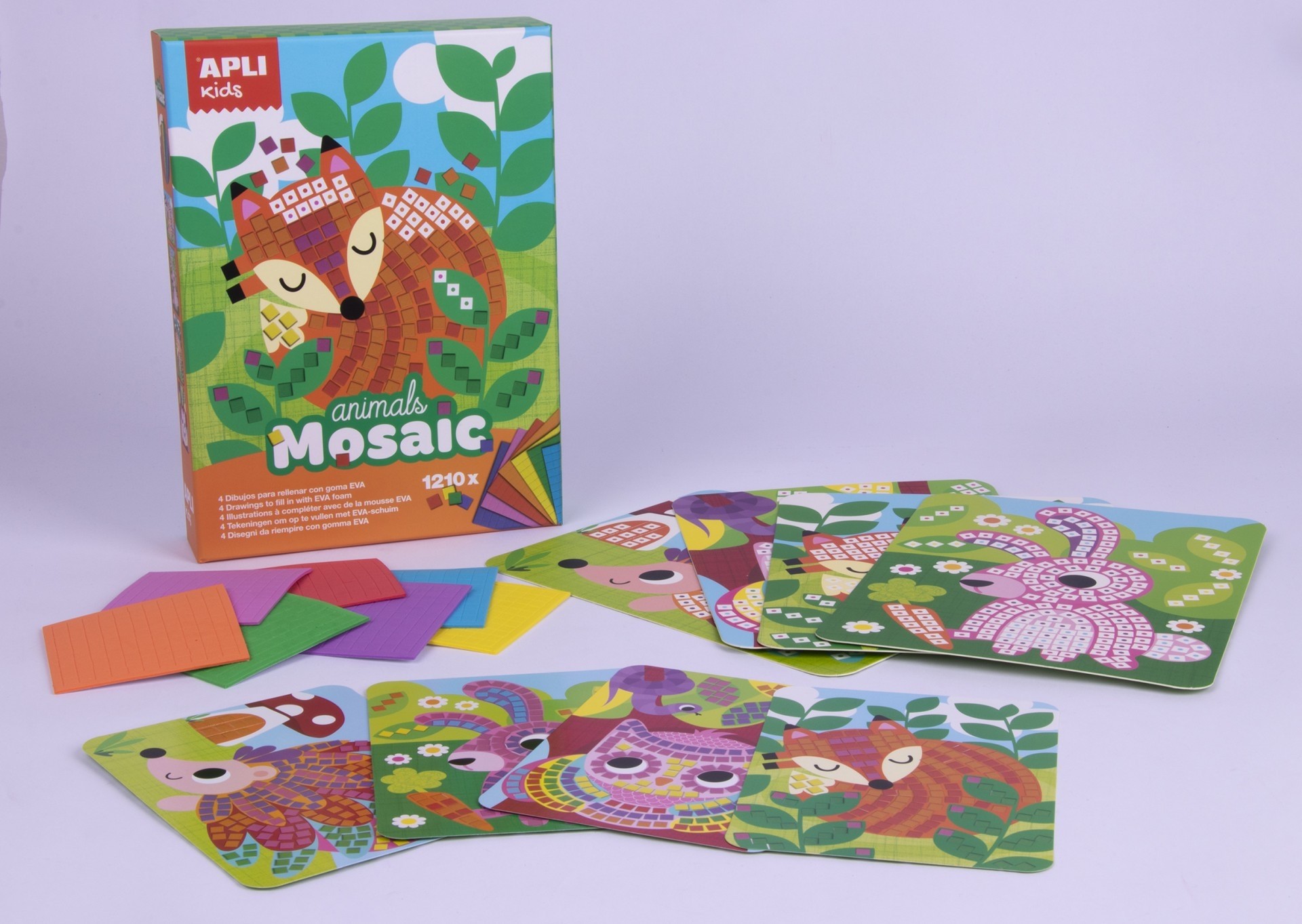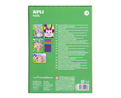 Tai žaidimas, skirtas sukurti mozaikas su lipniomis, iš anksto iškirptomis, skirtingų spalvų ir apdailos EVA porolono detalėmis. Žaidimo esmė yra užbaigti paveikslėlius ant specialių kortelių su lipniomis EVA porolono detalėmis ir sukurti užburiančius gyvūnėlių tematikos vaizdus. Šį rinkinį itin lengva naudoti: kartoninės kortelės turi tuščias vietas su spalvotais taškeliais, kurie nurodo, kokios spalvos EVA porolono detalėmis tos vietos turėtų būti užpildytos. Šis produktas pasižymi aukšta didaktine verte, todėl tobulai tinka vystyti įvairius vaikų įgūdžius: miklumą ir tikslumą, smulkiąją motoriką, akių-rankų koordinaciją, erdvinį suvokimą.Viduje: Instrukcijos, lapai su lipniomis, iš anksto iškirptomis, skirtingų spalvų EVA porolono detalėmis, 2 kortelės su aukštos kokybės spalvotos spaudos, dviejų skirtingų dizainų paveikslėliais.