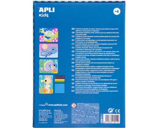 Tai žaidimas, skirtas sukurti mozaikas su lipniomis, iš anksto iškirptomis, skirtingų spalvų ir apdailos EVA porolono detalėmis. Žaidimo esmė yra užbaigti paveikslėlius ant specialių kortelių su lipniomis EVA porolono detalėmis ir sukurti užburiančius jūros pasaulio tematikos vaizdus. Šį rinkinį itin lengva naudoti: kartoninės kortelės turi tuščias vietas su spalvotais taškeliais, kurie nurodo, kokios spalvos EVA porolono detalėmis tos vietos turėtų būti užpildytos. Šis produktas pasižymi aukšta didaktine verte, todėl tobulai tinka vystyti įvairius vaikų įgūdžius: miklumą ir tikslumą, smulkiąją motoriką, akių-rankų koordinaciją, erdvinį suvokimą.Viduje: Instrukcijos, lapai su lipniomis, iš anksto iškirptomis, skirtingų spalvų EVA porolono detalėmis, 2 kortelės su aukštos kokybės spalvotos spaudos, dviejų skirtingų dizainų paveikslėliais.