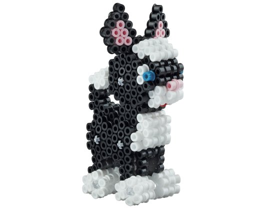 Hama 3D „Katinas ir šuo 3D" rinkinys lavinantis tiek vaikų, tiek suaugusiųjų kūrybingumą ir vaizduotę. Vaikai gali įsitraukti į valandų valandas trunkančią pramogą kurdami šaunius kačių ar šunų dizainus.