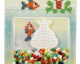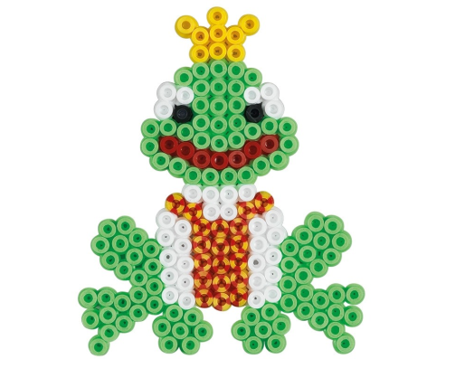 Viduje: Apie 350 karoliukų, 1 maža varlės formos dėliojimo lentelė, lyginimo popierius.